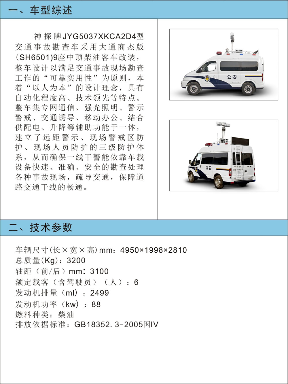 推薦標準為GA/T799-2008 《現(xiàn)場勘查車技術(shù)條件》