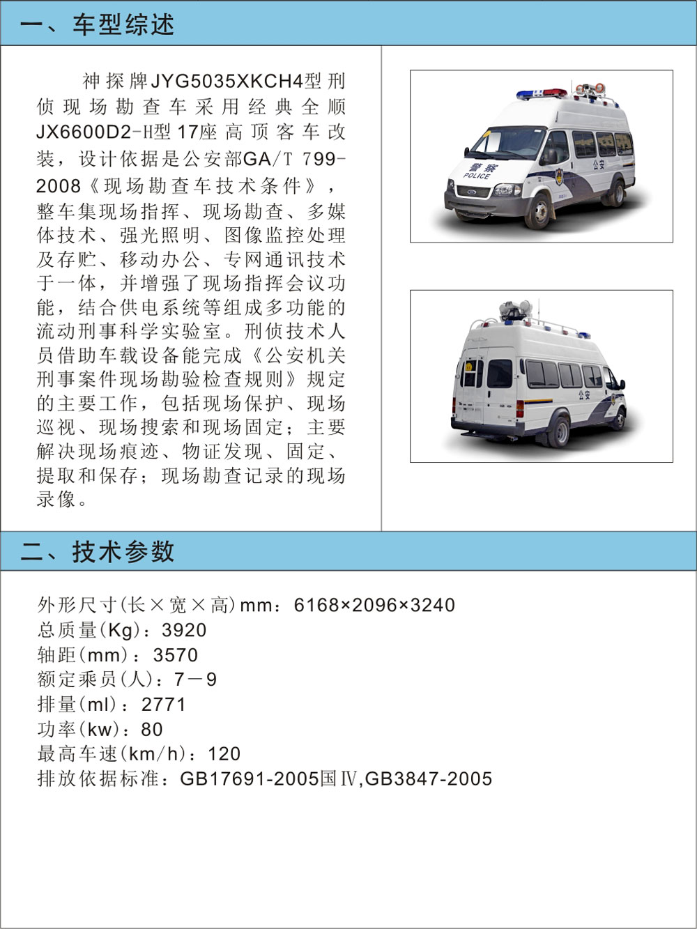 JYG5035XKCH4型刑偵現(xiàn)場勘查車