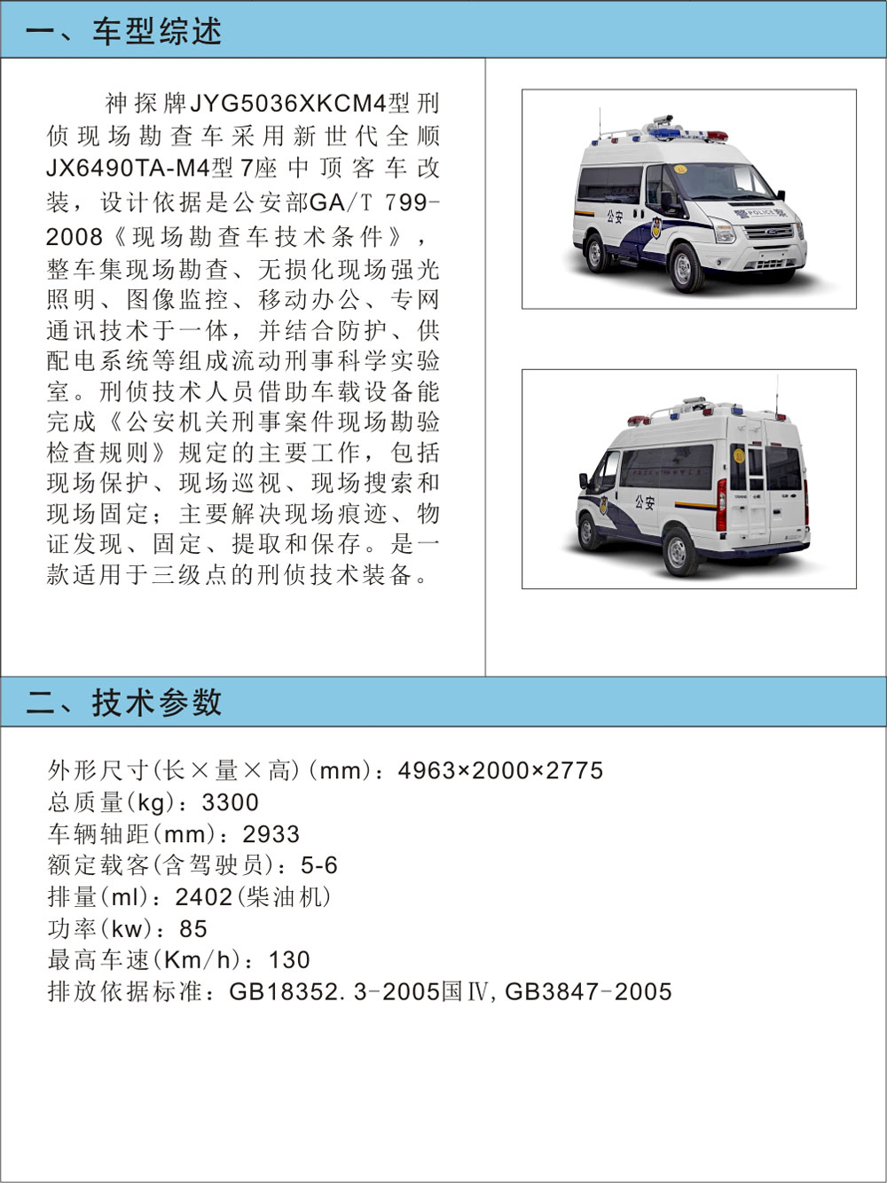 推薦標(biāo)準(zhǔn)為GA/T799-2008 《現(xiàn)場勘查車技術(shù)條件》