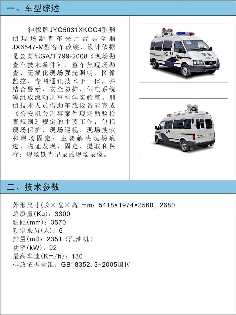 JYG5031XKCG4型刑偵現(xiàn)場勘查車