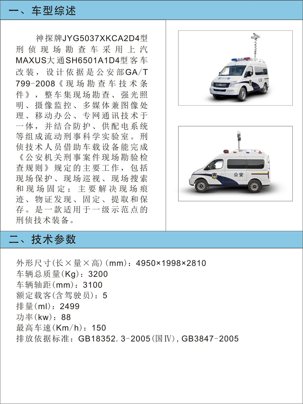 JYG5037XKCA2D4型刑偵現(xiàn)場勘查車